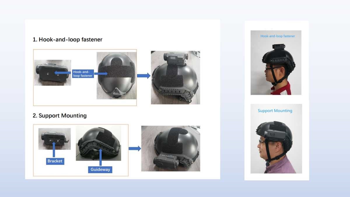 With two mounting methods, this 4G helmet camera is easy to be installed. Users can install the camera with a Hook-and-Loop fastener or guideway.