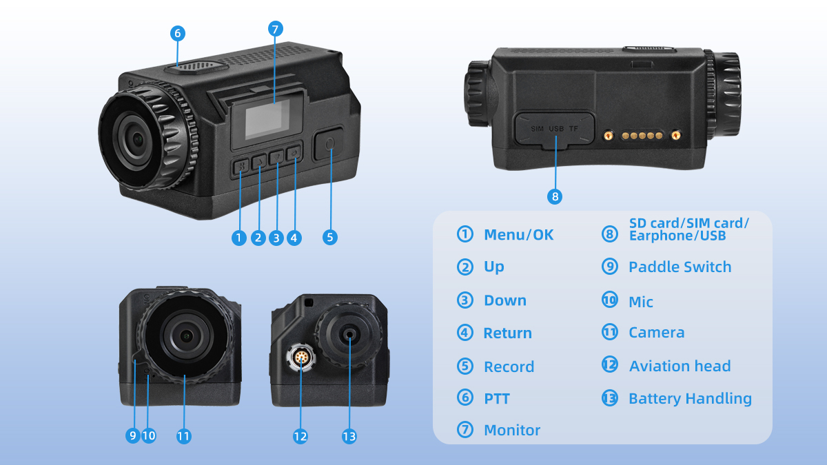 By pressing the PTT button on the camera, the camera will work like a walkie-talkie and talk to the control center anywhere in the world via 4G or WiFi connectivity.