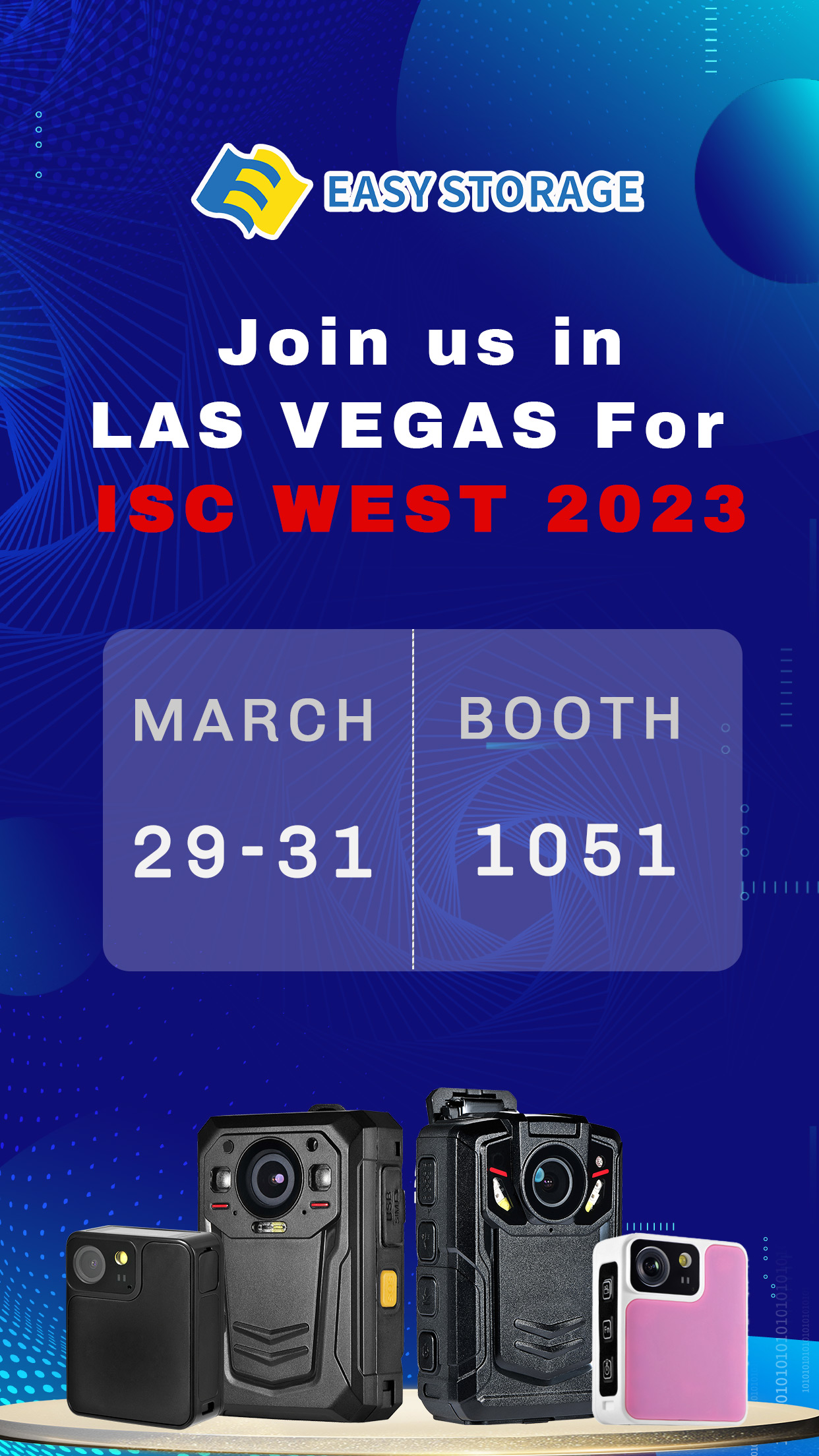 EASY STORAGE will show our new 4G Body Worn Cameras, Mini Body Cameras as well as our Video Evidence management system.
