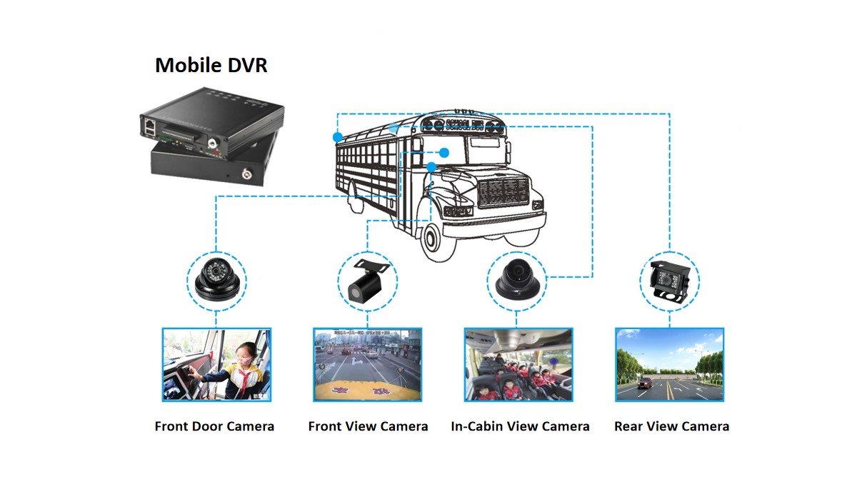 With up to 8 wide angle cameras, the system provide you 360° 1080P video evidence covering inside and around the school bus, which can help you Identify bullying, vandalism, student discipline problems, and driver safety issues.