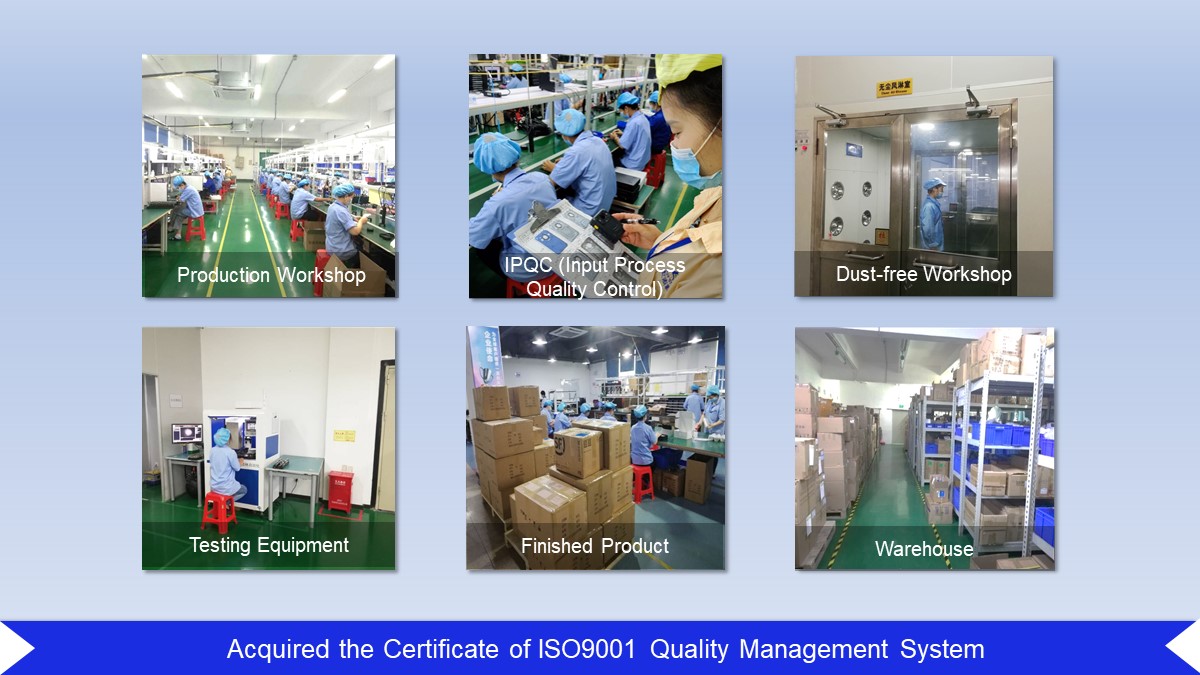 La société a 18 ans d'expérience dans la fabrication audio et vidéo. Nos principaux produits comprennent des enregistreurs vidéo numériques mobiles, des caméras Full HD, des caméras AHD et des caméras portées sur le corps. L'usine possède des équipements de production avancés et d'autres installations matérielles. Il y a 3 lignes de production et 1 ligne d'assemblage, qui peut réaliser plusieurs types de livraison de produits. L'usine met en œuvre un mode de production allégé basé sur une seule demande, met en œuvre strictement le contrôle de qualité ISO9001, effectue une gestion complète de la production et s'efforce d'améliorer la qualité et l'efficacité de la production, dans clients avec des services produits efficaces.