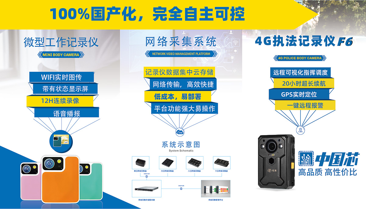 1、执法记录仪完全使用中国大陆国产芯片,非美国或中国台湾省生产的芯片。