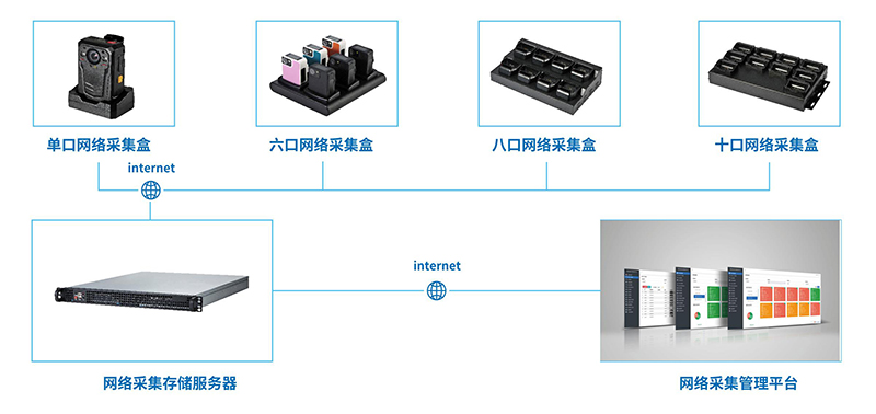 有了执法记录仪,就少不了忆志网络采集系统,整个系统是基于Linux自主研发,完全自主可控,整个系统架构灵活简单,记录仪插入采集盒,即可同时上传数据和充电,登入网络采集平台即可查看执法仪数据传输情况,执法仪电量等设备相关信息。低成本,易部署,操作简单是这款系统的特点。
