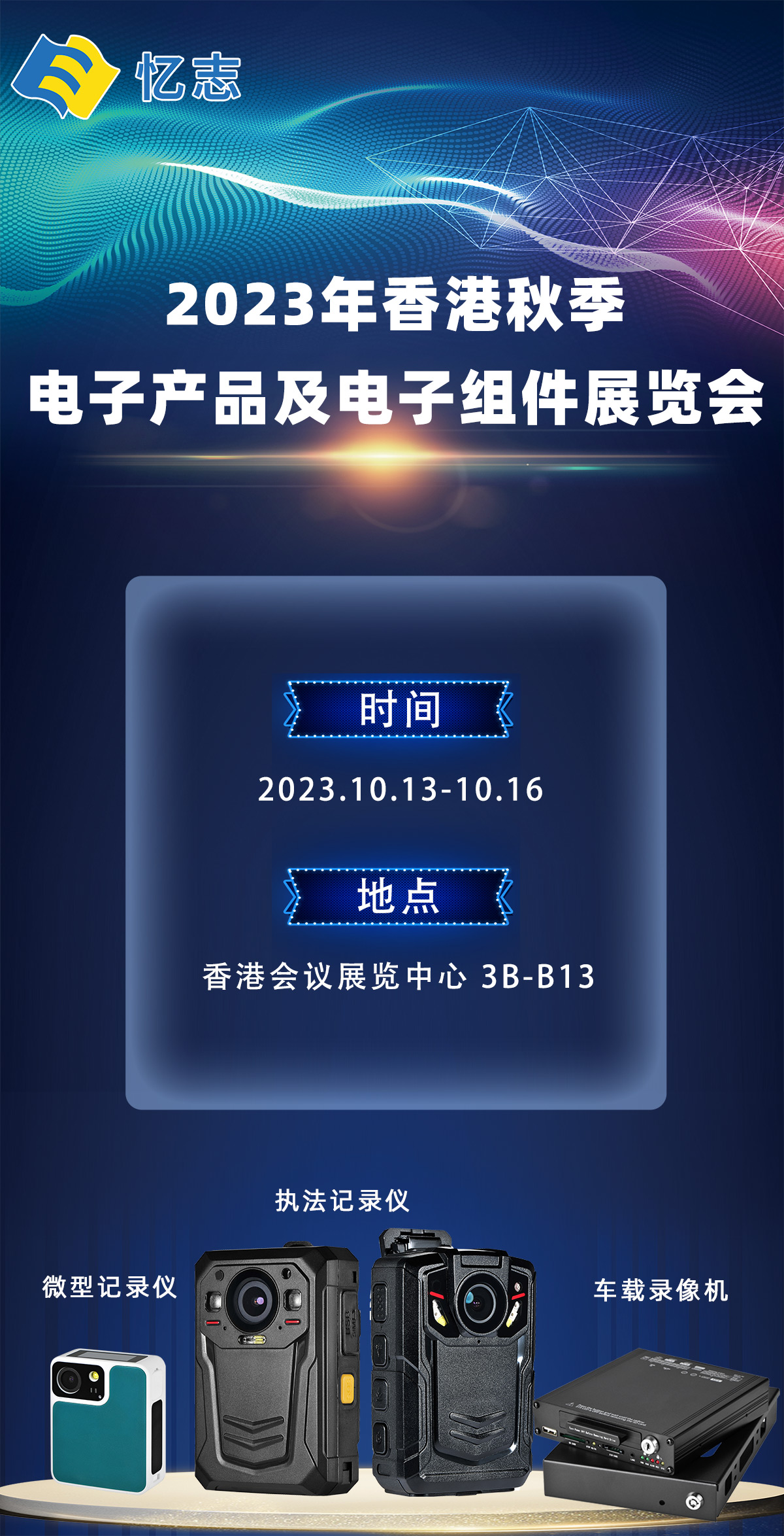 2023年香港秋季电子产品及电子组件展览会将于10月13-16日,在香港会议展览中心盛大举行。作为4G执法记录仪行业领先的研发生产商,忆志科技将携带4G执法记录仪和工作记录仪,网络采集系统等产品隆重亮相。欢迎广大客户前往忆志科技现场展位,获取忆志科技最新产品资讯。