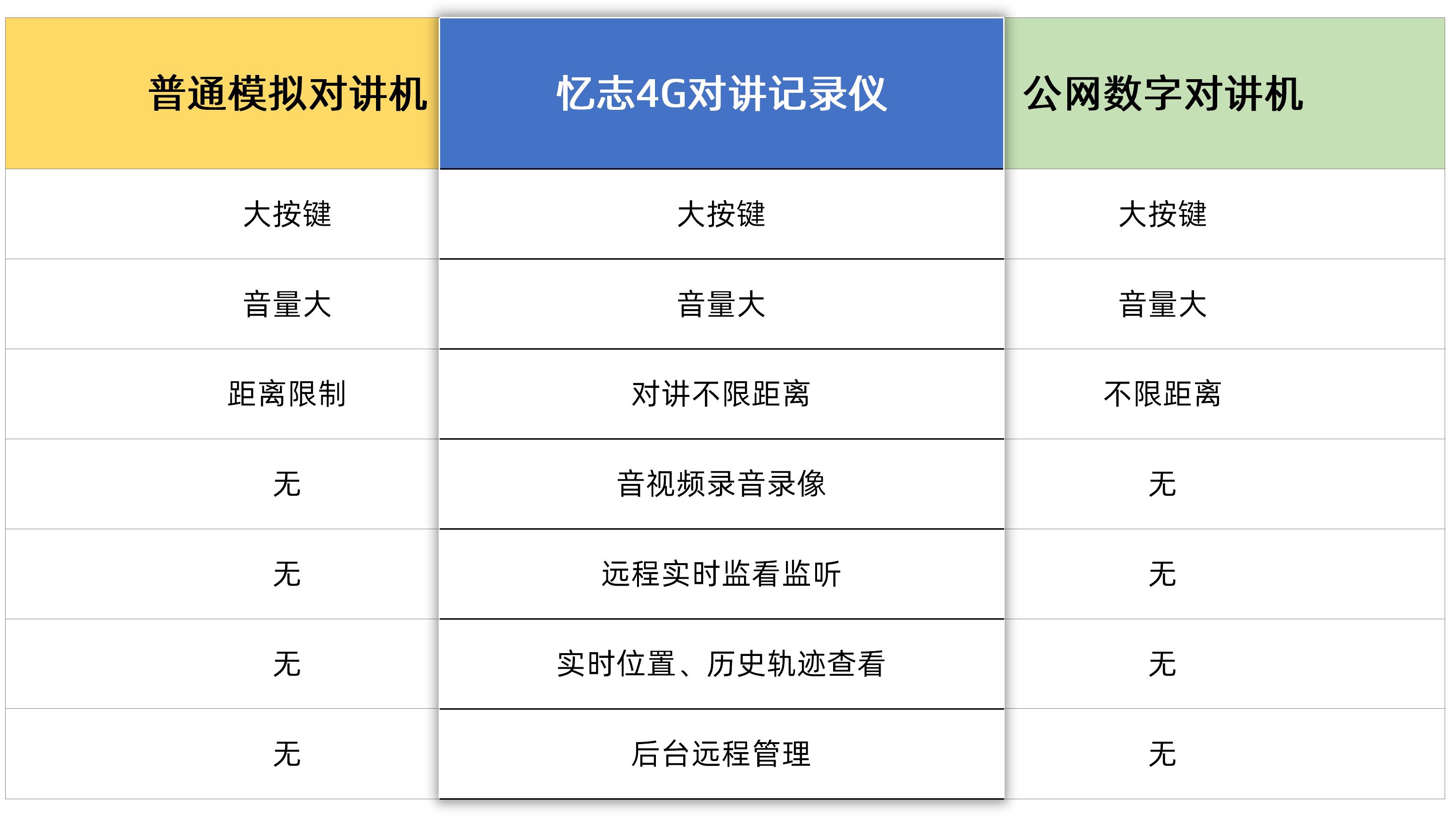 忆志4G对讲现场记录仪VS对讲机VS 4G记录仪