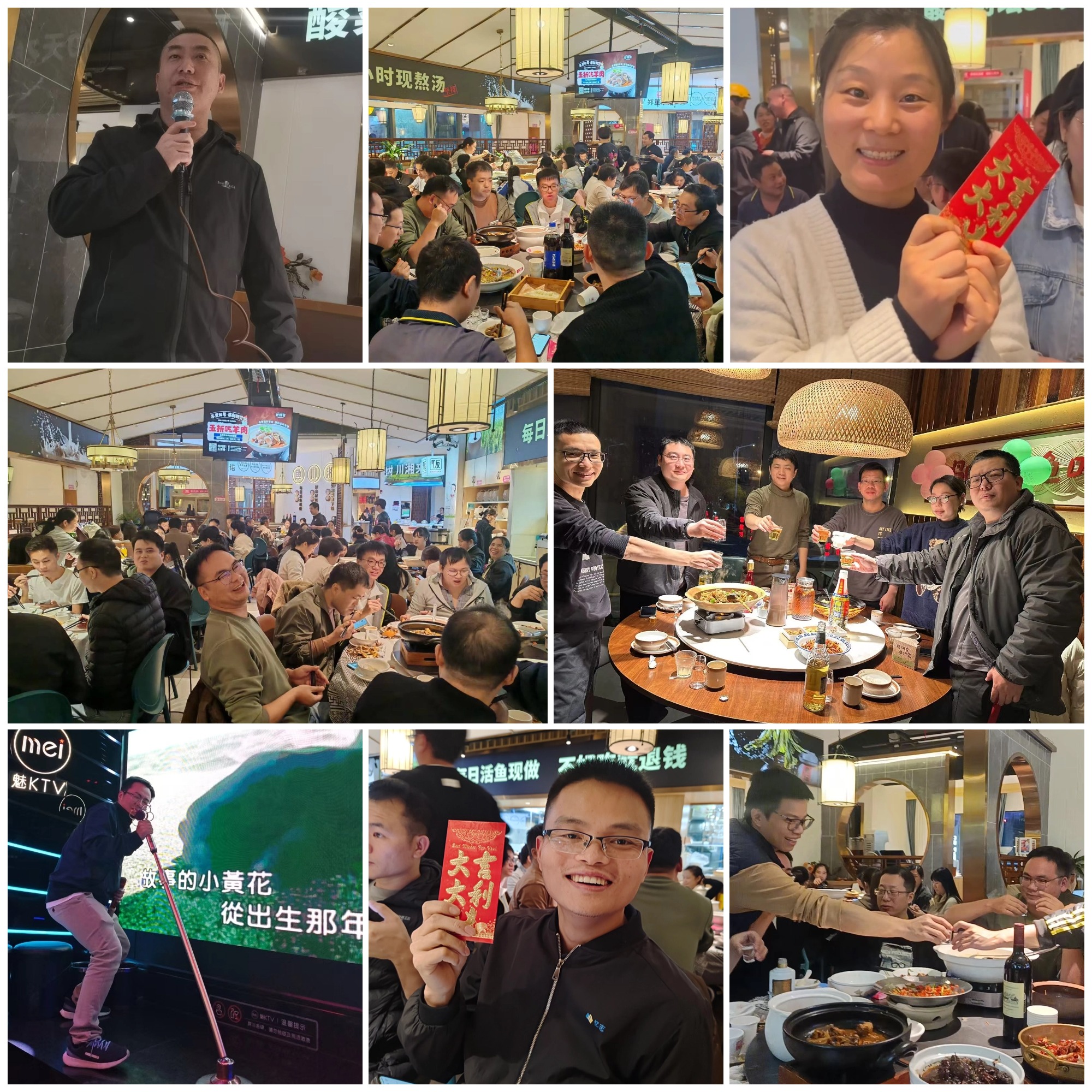 晚宴现场,八张圆桌依次排开,灯光璀璨,美食飘香,大家围坐一起,举杯交错,分享着过去一年的点点滴滴,共同期待着新的一年里更加辉煌的篇章。