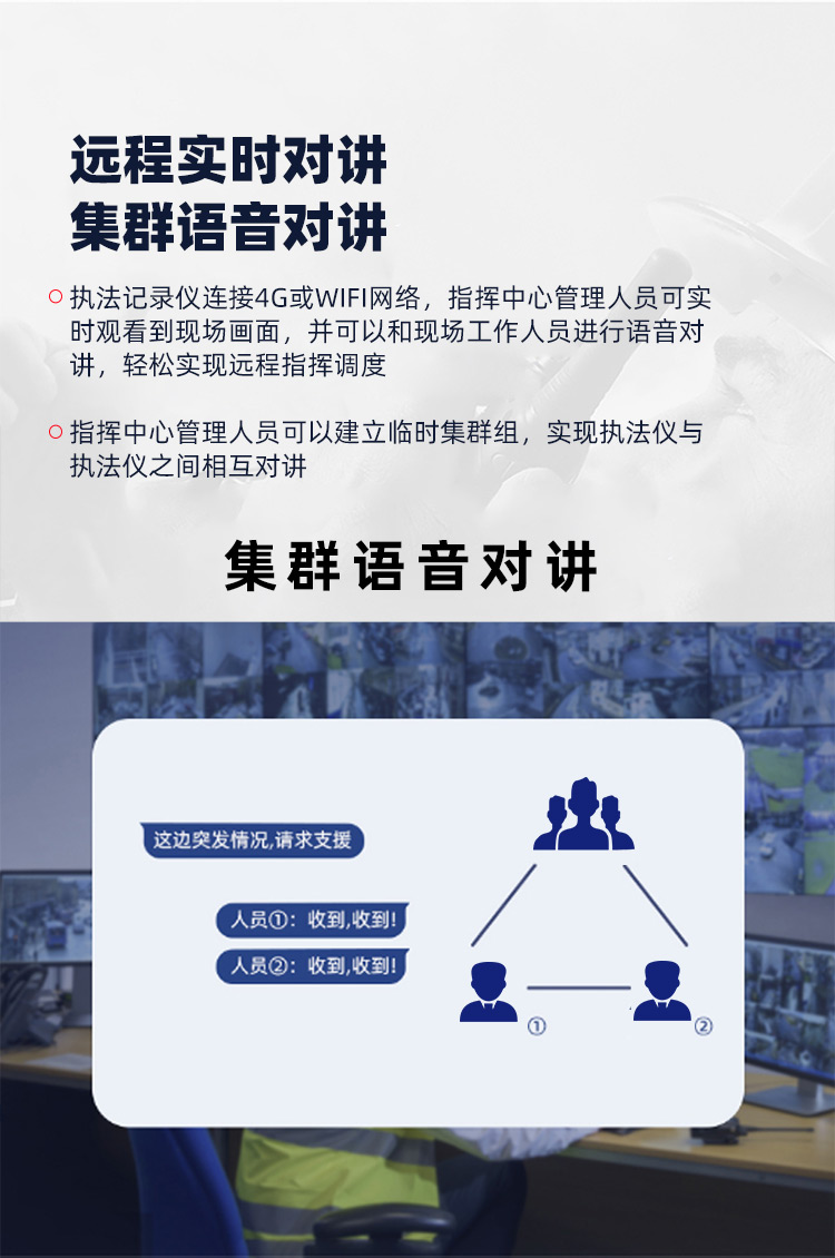 支持实时预览/实时定位/轨迹回放/对讲/监听/远程命令下发等 |