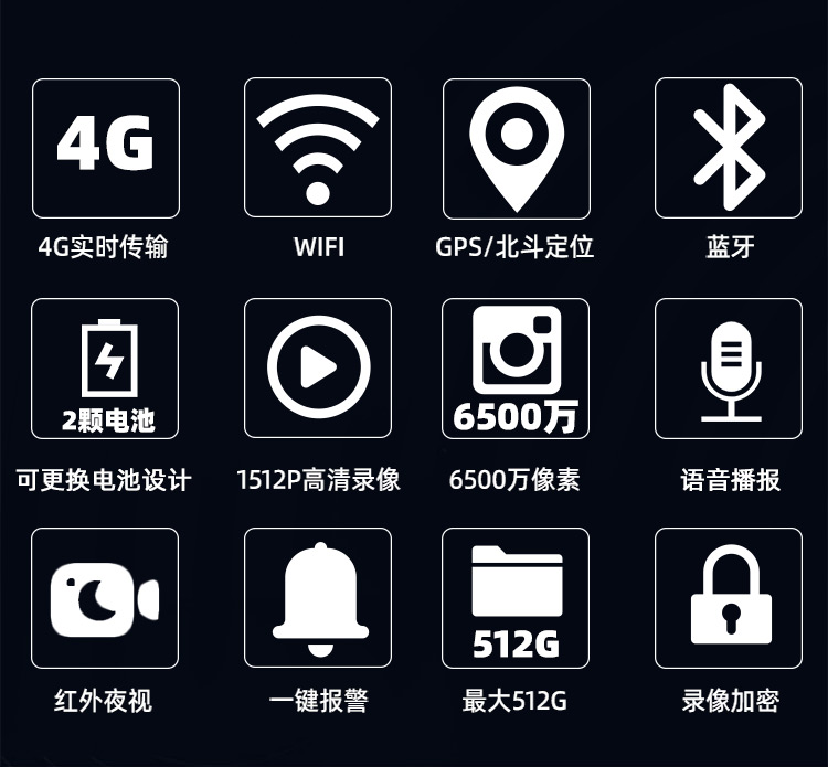 ●内置GPS/北斗定位模块,位置信息和录像资料打包在一个文件里,可支持GPS/北斗实时定位。