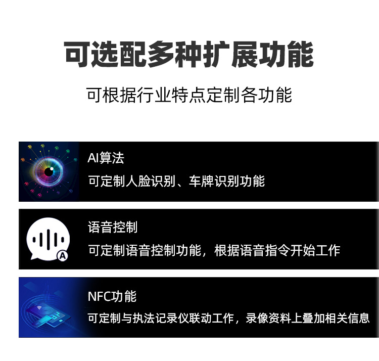 支持深度学习算法人脸识别,海量本地黑名单或云识别(非标配) |