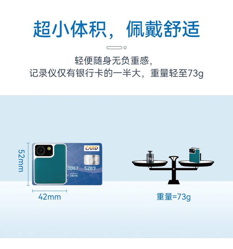 ●体积小,重量轻。仅有银行卡的一半,重量轻至73g。