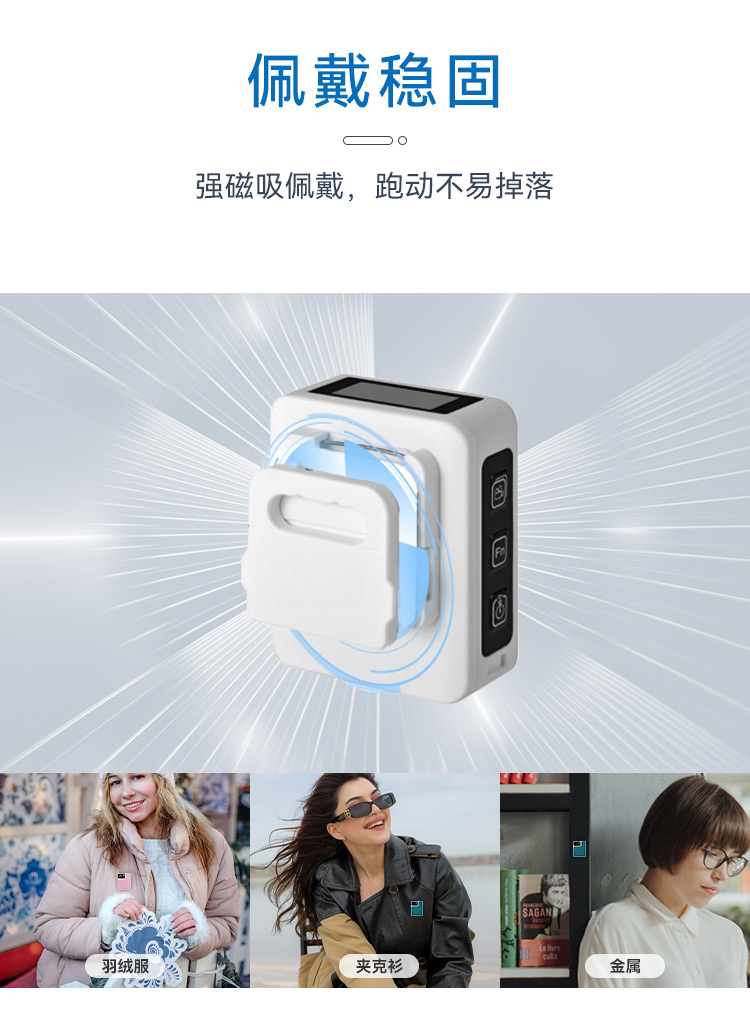 ●磁吸佩戴,解放双手。夹克,羽绒服,金属架都能稳稳吸住,稳固不易掉落。