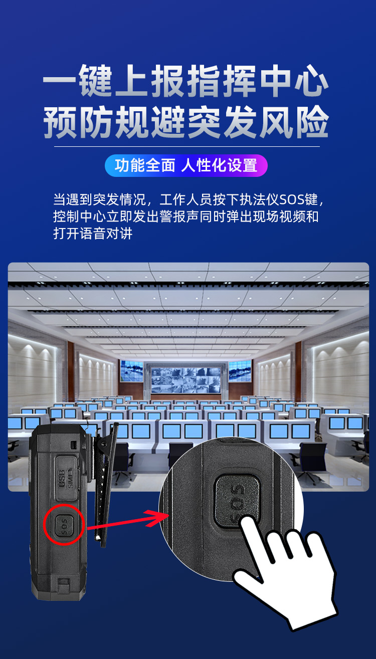 具有SOS一键报警功能,产生报警时平台可自动发出报警声音,并可自动弹出实时视频与抓拍照片,报警录像不会被自动删除。