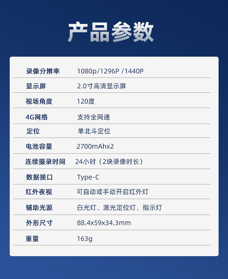 续航能力强,内置2700mAh大容量电池,更换电池不断电,2颗电池1080P分辨率下连续录约24小时。