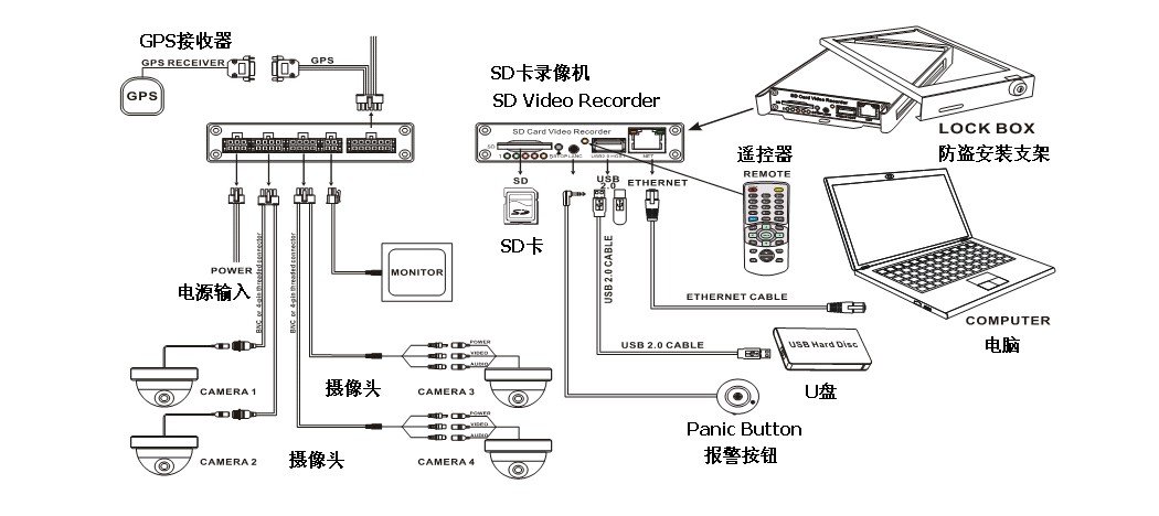 最多可支持8路摄像头,摄像头清晰度可达1080P,全方位监控公交车情况
