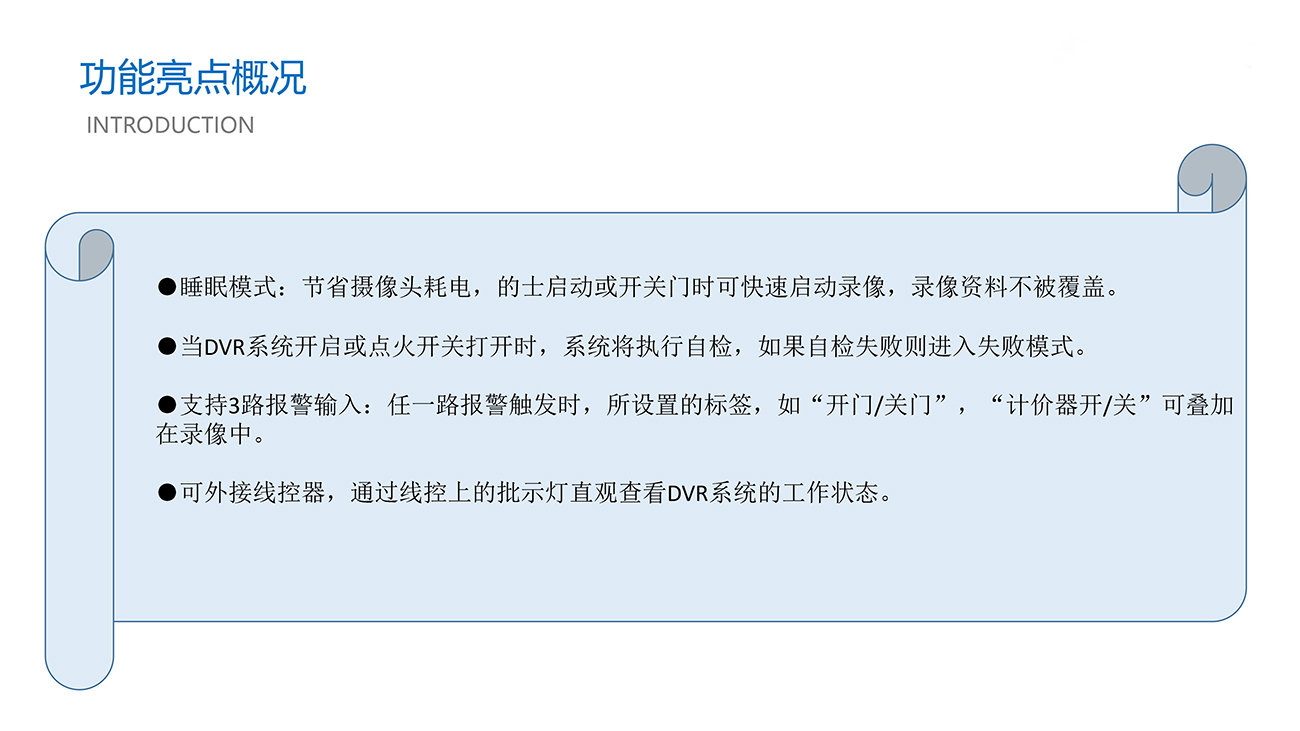 摄像头清晰度可达1080P,全方位监控的出租车情况,支持高清显示屏,支持倒车侧视与后视,实现车载图像辅助驾驶功能,增大驾驶视野,消除驾驶盲点