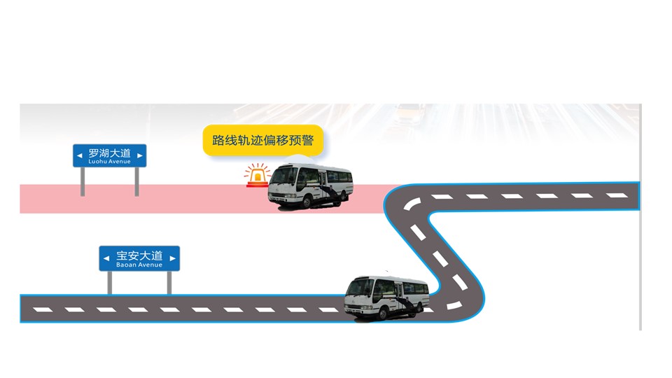 偏离指定线路,超出指定区域范围自动报警到指挥中心