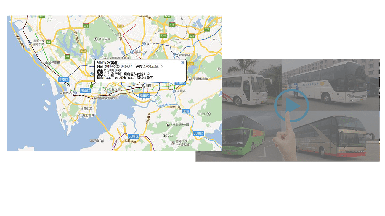 通过电脑客户端/手机APP实时定位大巴车位置,记录长途车行驶轨迹,掌握实时大巴车的动向